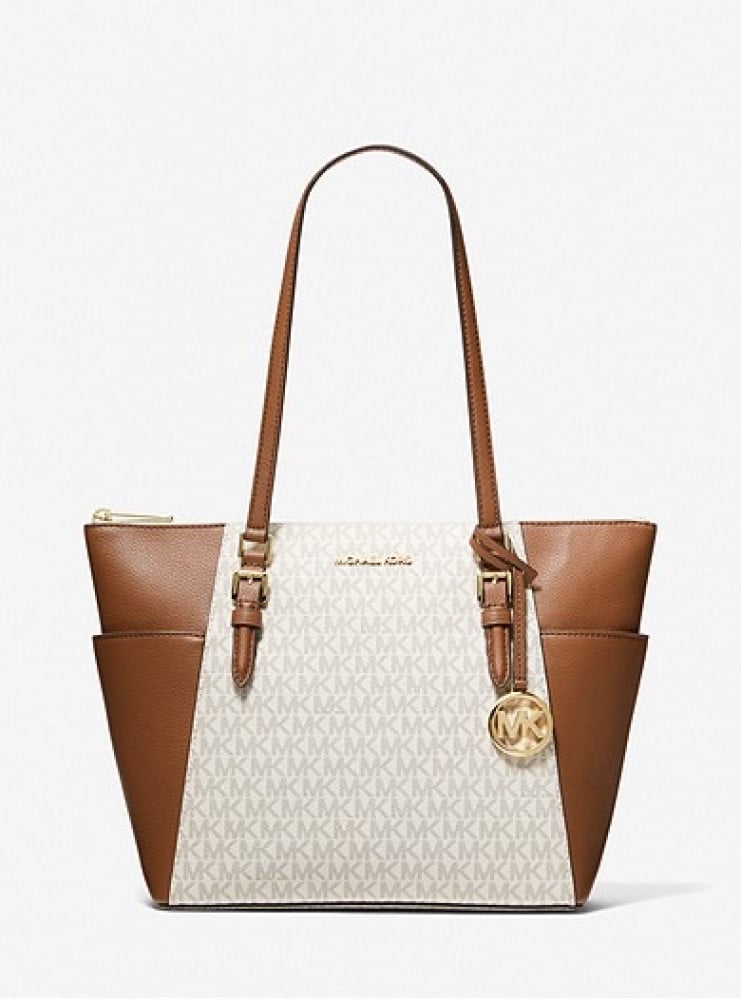 كون اكثر اناقه مع شنطة مايكل ذات اللون الجملي مع الأبيض . شنطة نسائية ذات مواصفات وجودة عالية عليها شعار ماركة مايكل كورس .