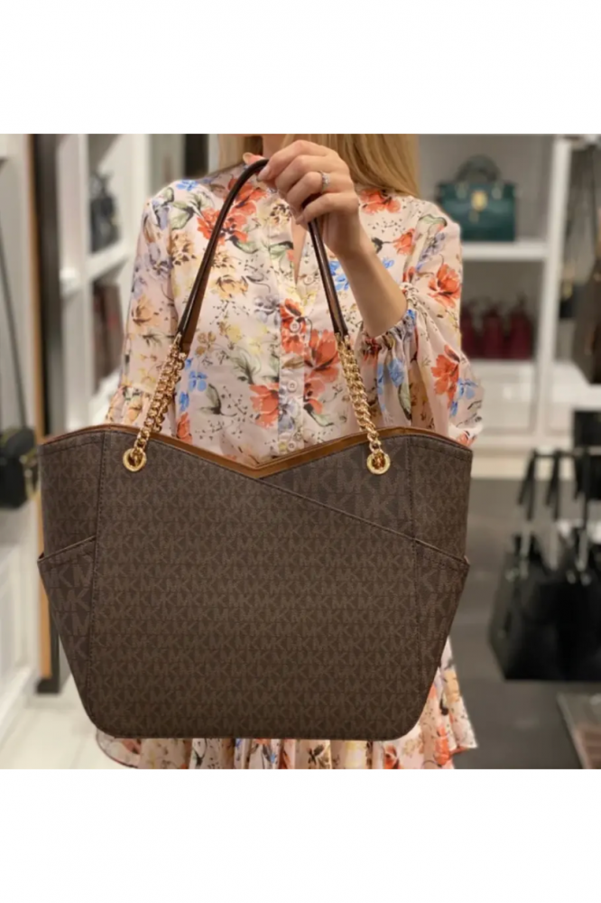 كوني اكثر اناقه مع شنطة مايكل ذات اللون البني الغامق . شنطة نسائية ذات مواصفات وجودة عالية عليها شعار ماركة مايكل كورس مع تناسق اللون البني الغامق مع الاسود .حجمها عملي يناسب اغلب احتياجاتك