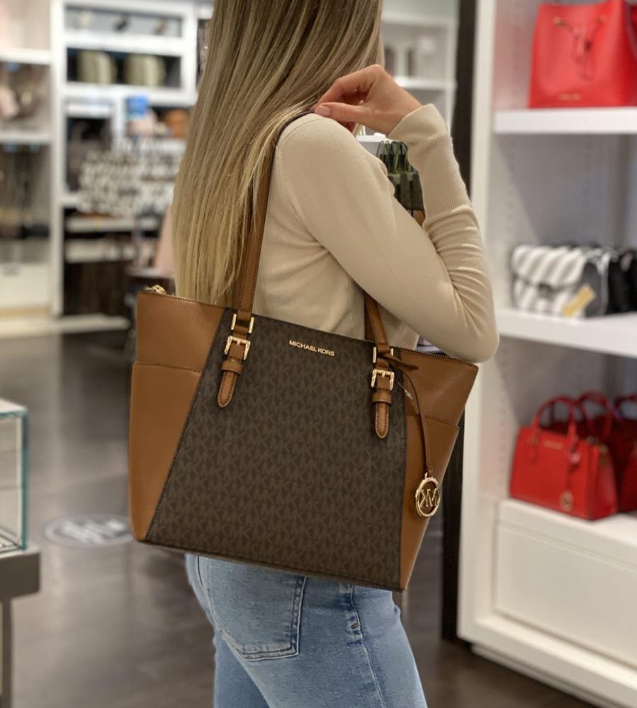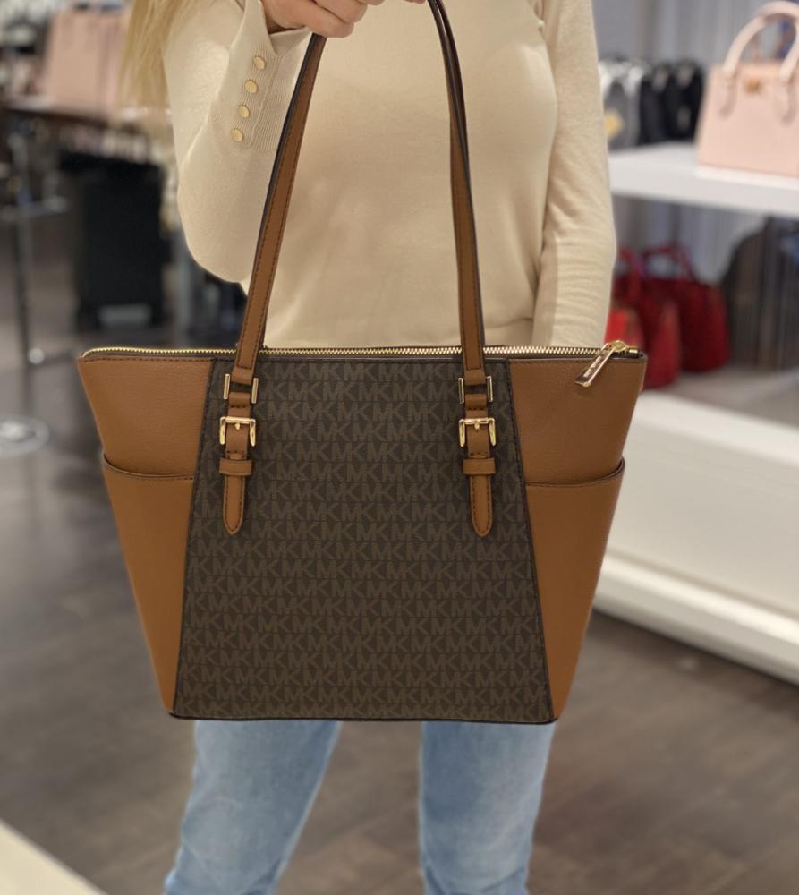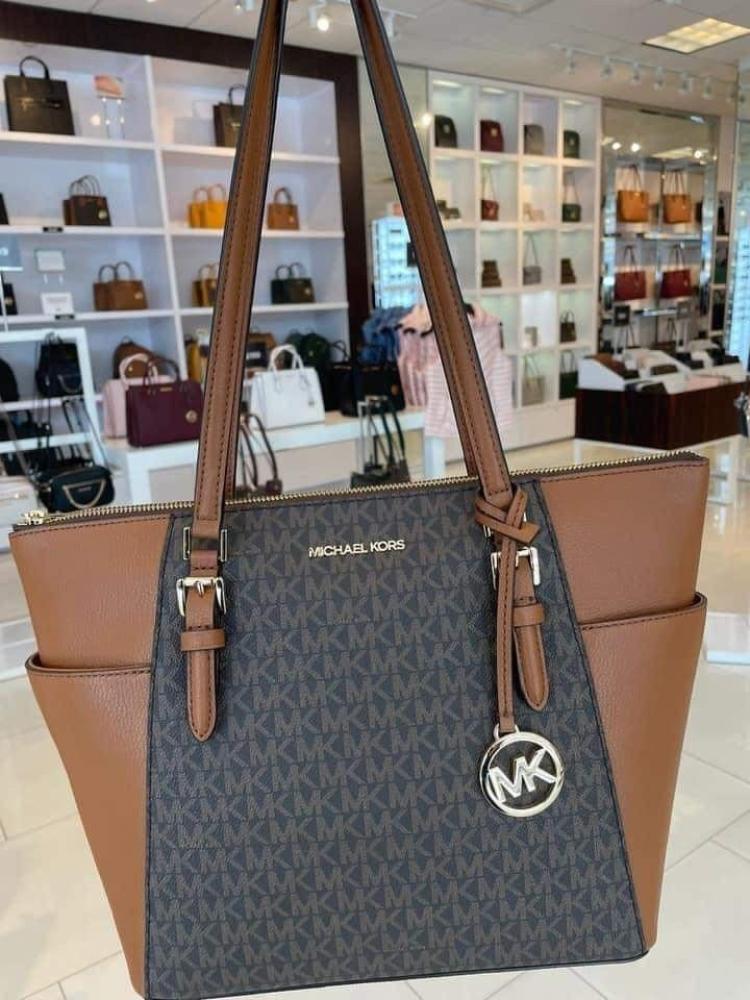 كون اكثر اناقه مع شنطة مايكل ذات اللون البني . شنطة نسائية ذات مواصفات وجودة عالية عليها شعار ماركة مايكل كورس .